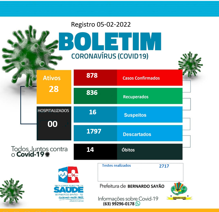 | 2 | BOLETIM DIARIO COVID-19 DE 05-02-2022 | 2022 | 2 | BOLETIM DIARIO COVID-19 | FUNDO MUNICIPAL DE SAÚDE DE BERN. SAYÃO | cloud_download Visualizar (144 downloads) |