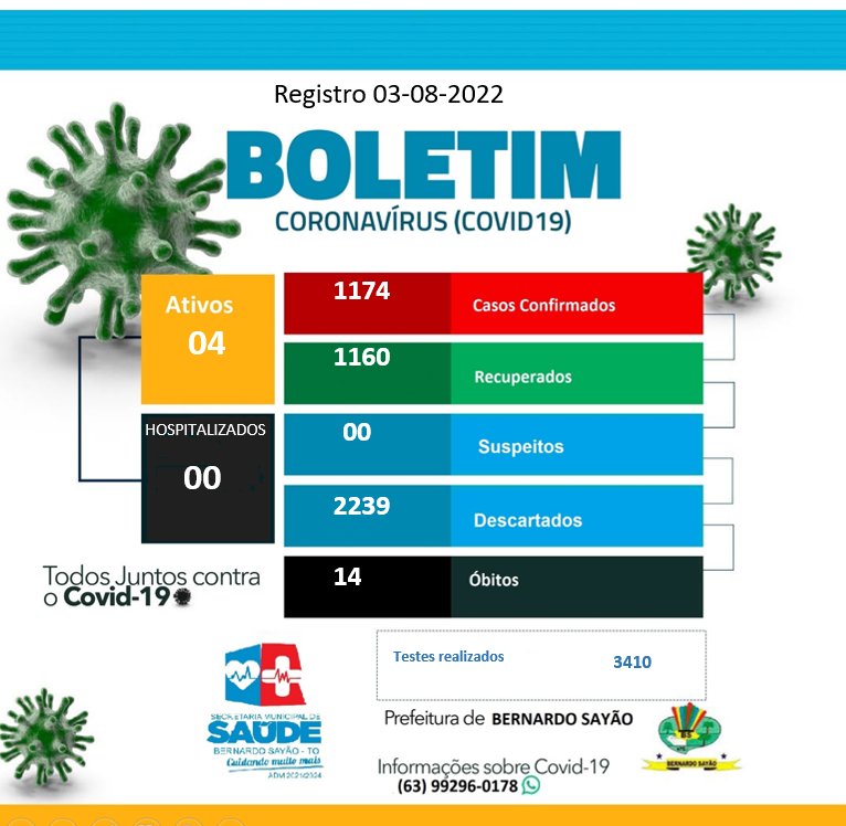 | 8 | BOLETIM DIÁRIO COVID-19 DE 03-08-2022 | 2022 | 8 | BOLETIM DIÁRIO COVID-19 | FUNDO MUNICIPAL DE SAÚDE DE BERN. SAYÃO | cloud_download Visualizar (150 downloads) |