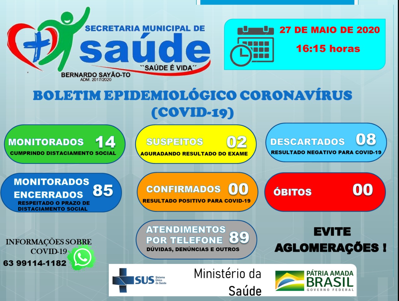 | 5 | BOLETIM DIARIO COVID-19 DE 26-05-2020 | 2020 | 5 | BOLETIM DIÁRIO COVID-19 | FUNDO MUNICIPAL DE SAÚDE DE BERN. SAYÃO | cloud_download Visualizar (186 downloads) |