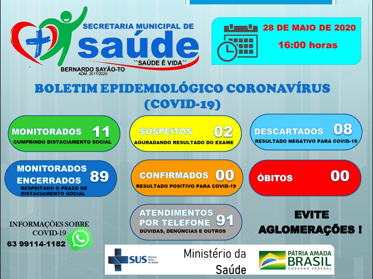 | 3 | BOLETIM DIARIO COVID-19 DE 28-05-2020 | 2020 | 5 | BOLETIM DIÁRIO COVID-19 | FUNDO MUNICIPAL DE SAÚDE DE BERN. SAYÃO | cloud_download Visualizar (169 downloads) |