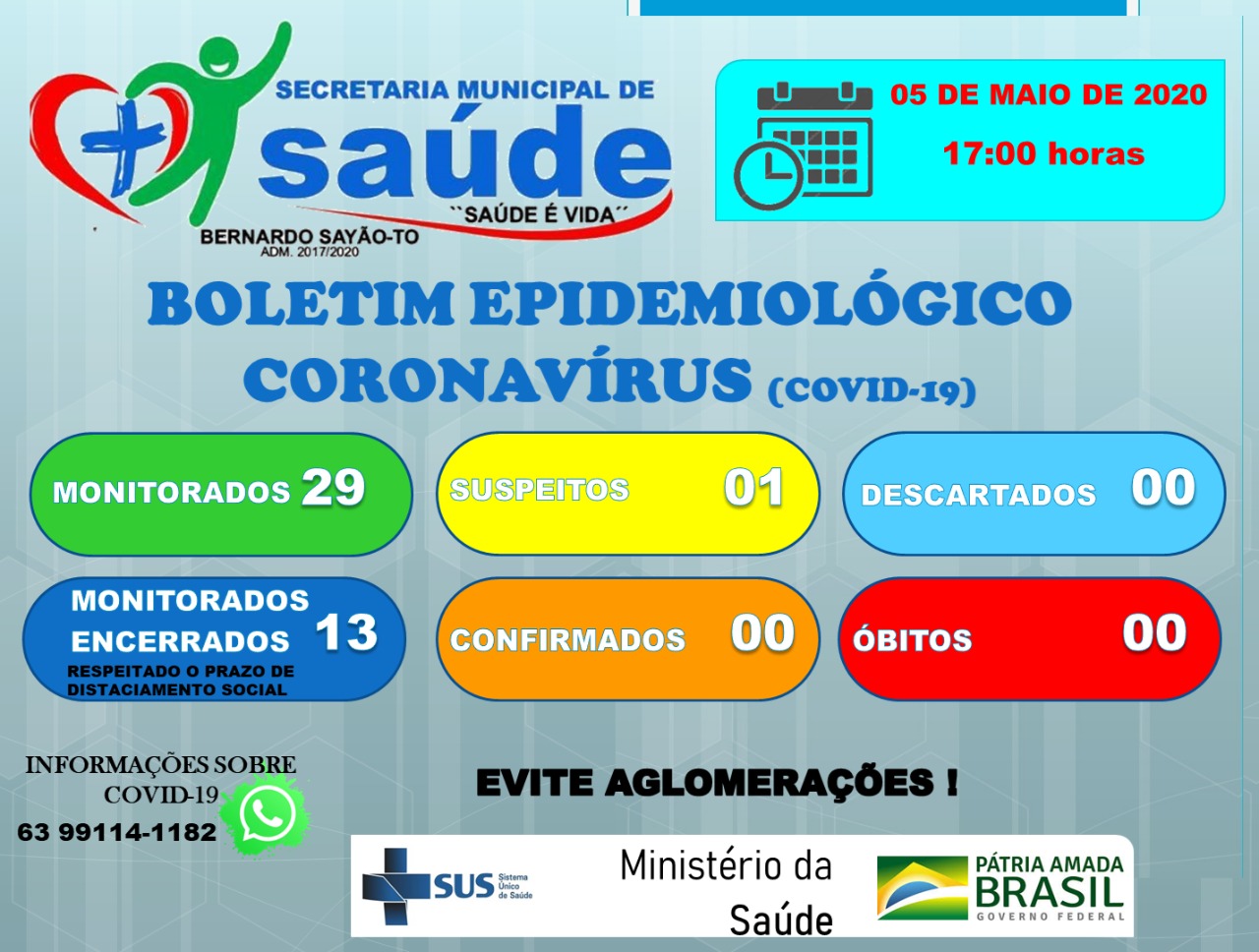 | 8 | BOLETIM DIARIO COVID-19 DE 05-05-2020 | 2020 | 5 | BOLETIM DIÁRIO COVID-19 | FUNDO MUNICIPAL DE SAÚDE DE BERN. SAYÃO | cloud_download Visualizar (144 downloads) |